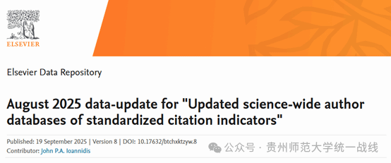 近日,斯坦福大学(Stanford University)和国际权威学术出版社爱思唯尔(Elsevier)共同发布2025年全球前2%顶尖科学家榜单(World’s Top 2% Scientists)。我校王仁海(校知联会理事)、汤小朋(致公党支部党员)、陈华国(校欧美同学会会员)三位学者入选“年度科学影响力排行榜”,其中王仁海连续3年入选,汤小朋连续2年入选,陈华国今年首次入选。